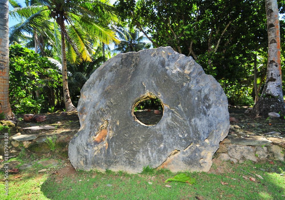 Samolepka Rai, or stone money on the forbidden island Rumung of Yap, Micronesia