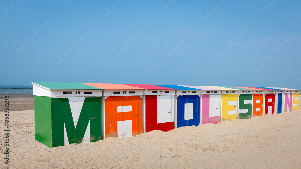 Samolepka Colorful beach huts on sandy beach in Malo-les-Bains, Dunkirk, France