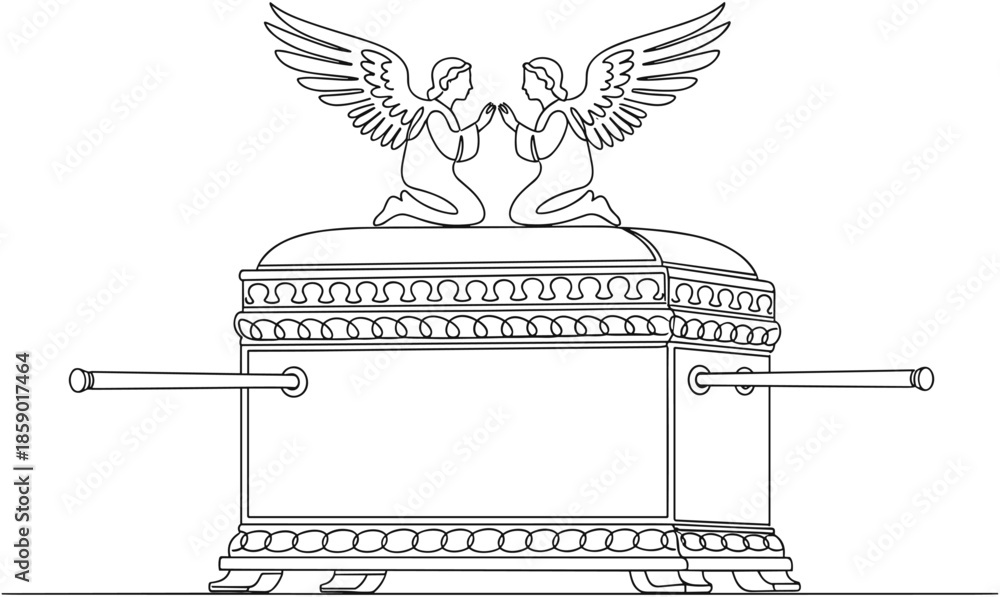 Samolepka Ark of the Covenant with golden cherubim angels vector illustration, religious b