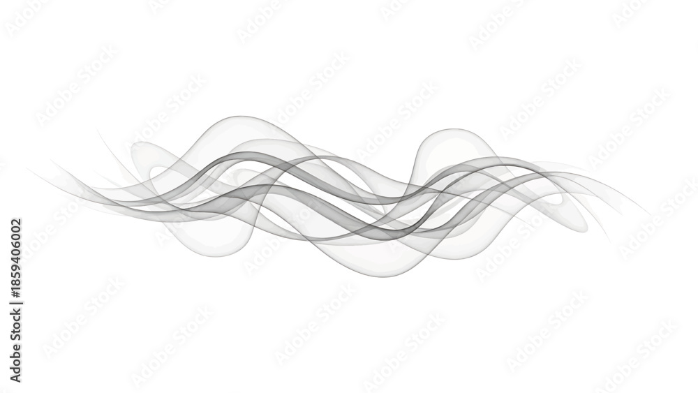 Samolepka A flowing abstract design of gray, translucent curves on a white background, res