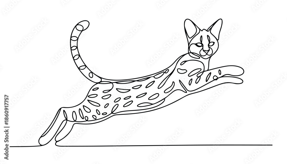 Samolepka One continuous line illustration of an wild cat , isolated on white background