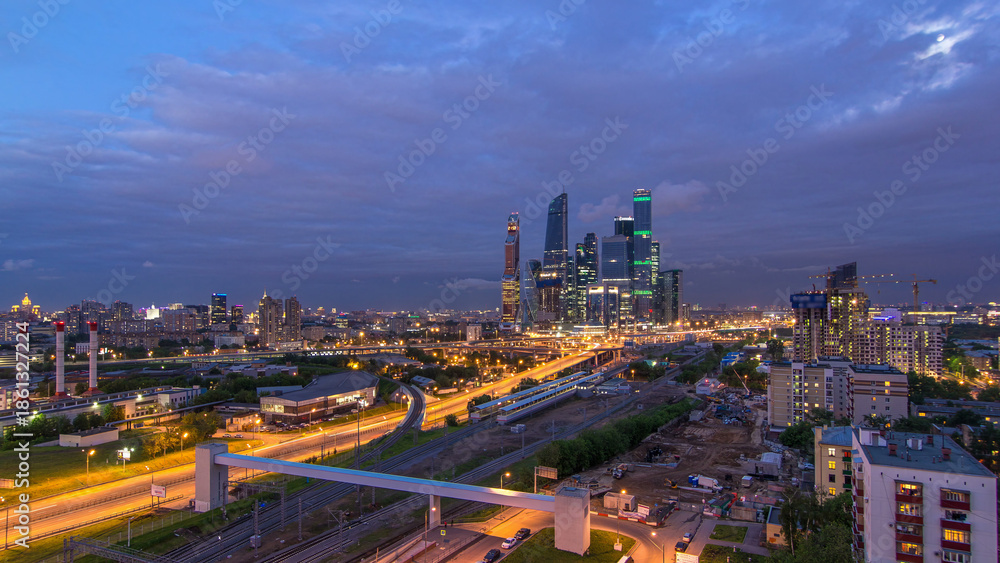 Samolepka Business complex of skyscrapers Moscow city day to night timelapse