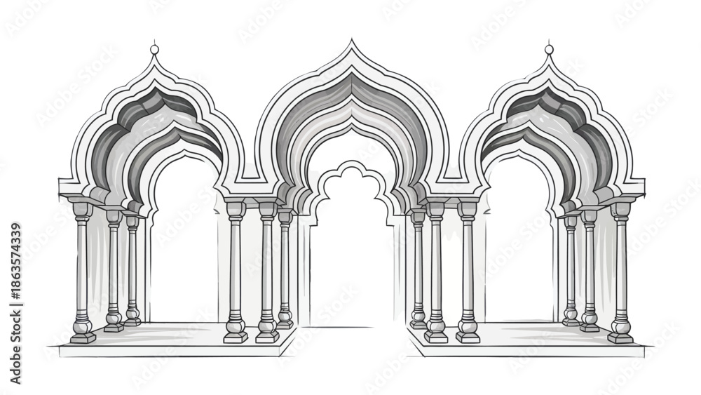 Samolepka Ancient Archway Design: An artistic depiction of an ancient archway with three grand archways adorned with intricate columns, exuding a sense of history and architectural elegance