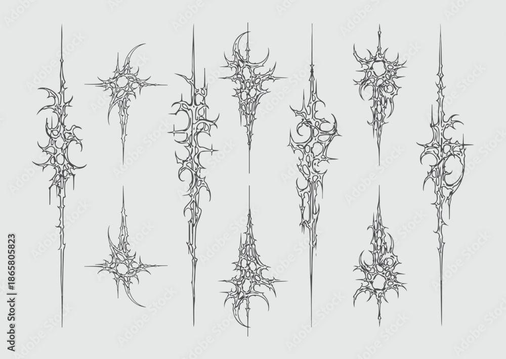 Samolepka Neo-Tribal Cyber Sigils Vector Set: Gothic Futuristic Linework, Occult Tattoo Co