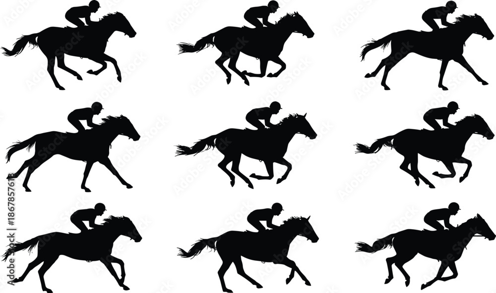 Samolepka Horse Racing Silhouette Collection Showing Jockey Riding Galloping Thoroughbred