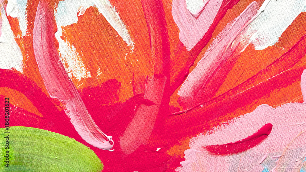 Samolepka Vibrant Abstract Brushstrokes in Pink, Orange and Green on Canvas