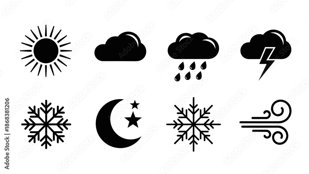 Samolepka Collection of weather icons representing various atmospheric conditions includin