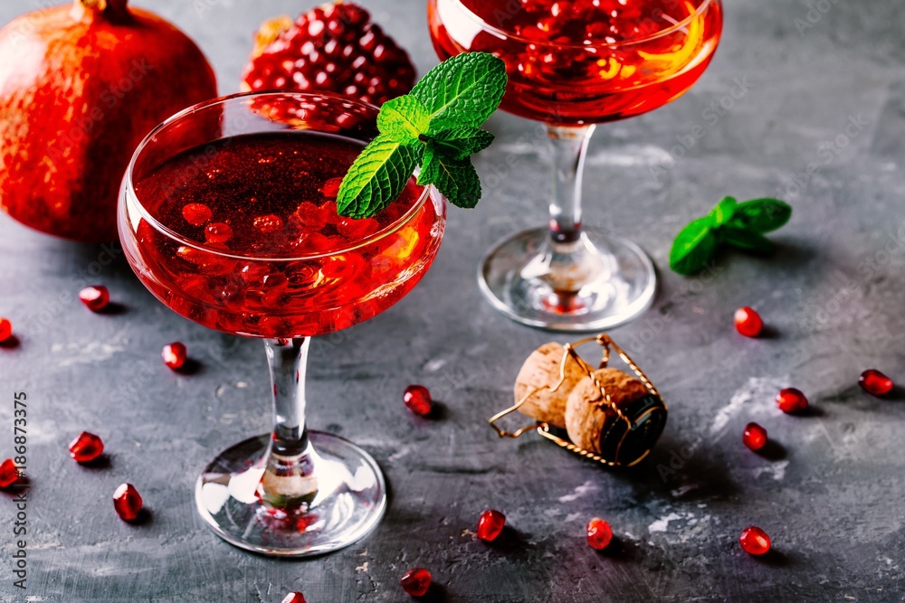 Samolepka red cocktail with sparkling wine and pomegranate seeds