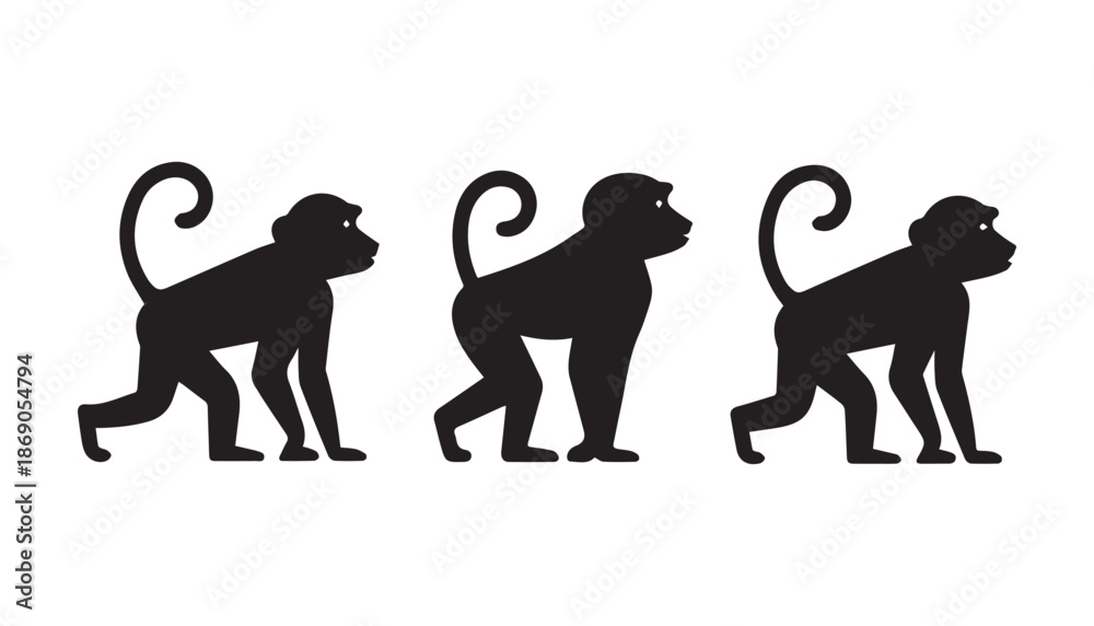 Samolepka black color Vervet Monkey set of silhouette vector illustration, solid white bac