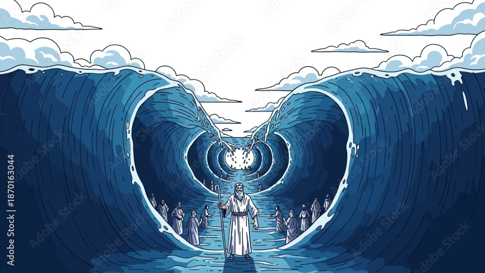 Samolepka Moses Parts the Red Sea for Israelites to Escape Pharaoh's Army, Divine Miracle