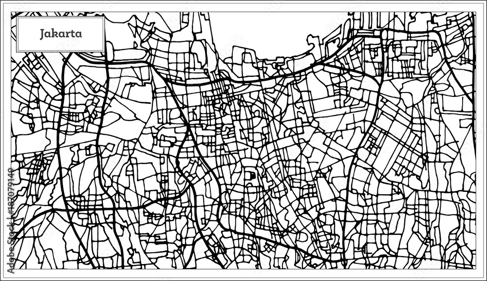 Samolepka Jakarta Indonesia City Map in Black and White Color.