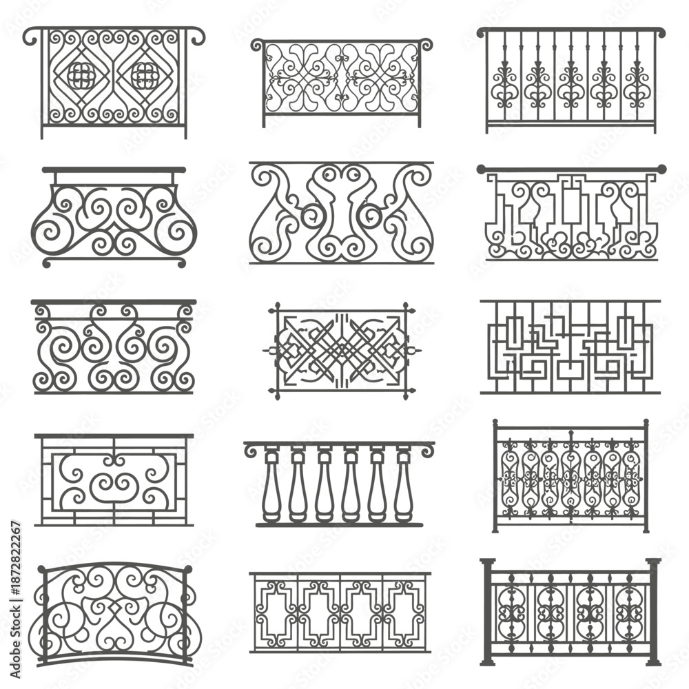 Samolepka Collection of ornate iron railing designs for balconies and staircases
