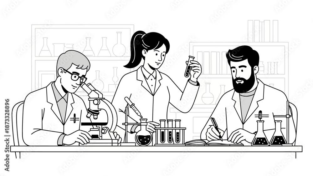 Samolepka Funny cartoon illustration of a doctor and nurse at work in a hospital with a wo