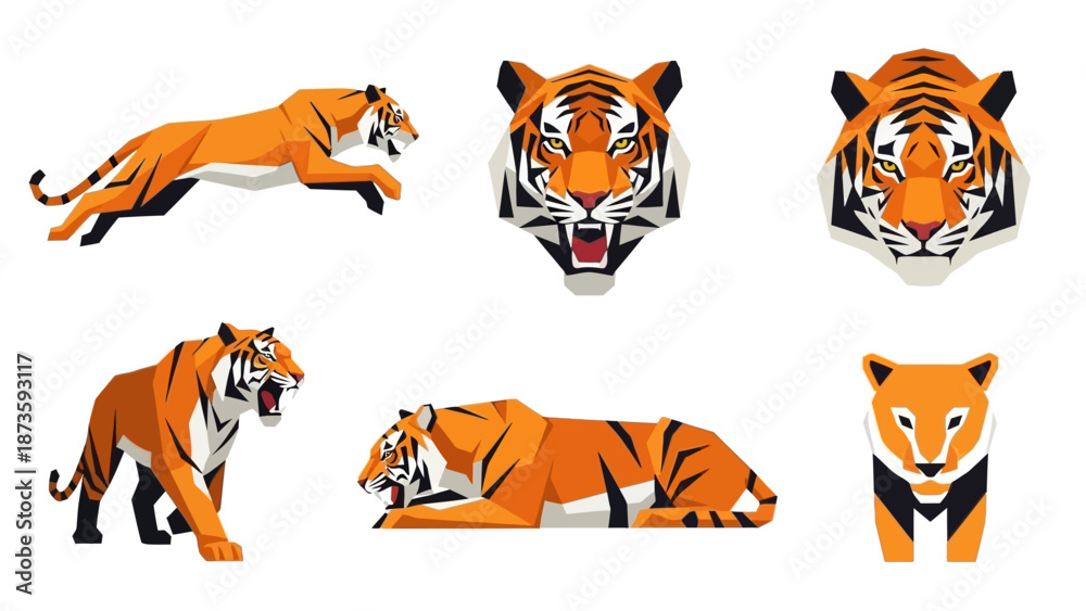 Samolepka Tiger Collection: Dynamic Poses & Fierce Faces, Geometric Style