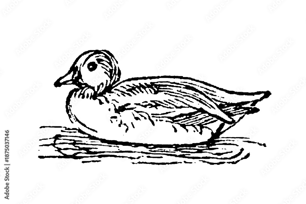 Samolepka Sarcelle teal duck with plumage and compact size, showing waterfowl characteristics for ornithological studies and wetland ecosystem documentation, old vintage illustration, 1897