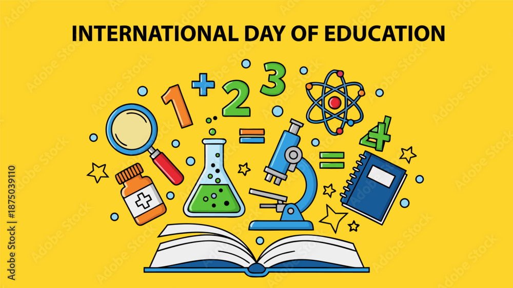 Samolepka Vibrant vector illustration of educational elements and science equipment on a b