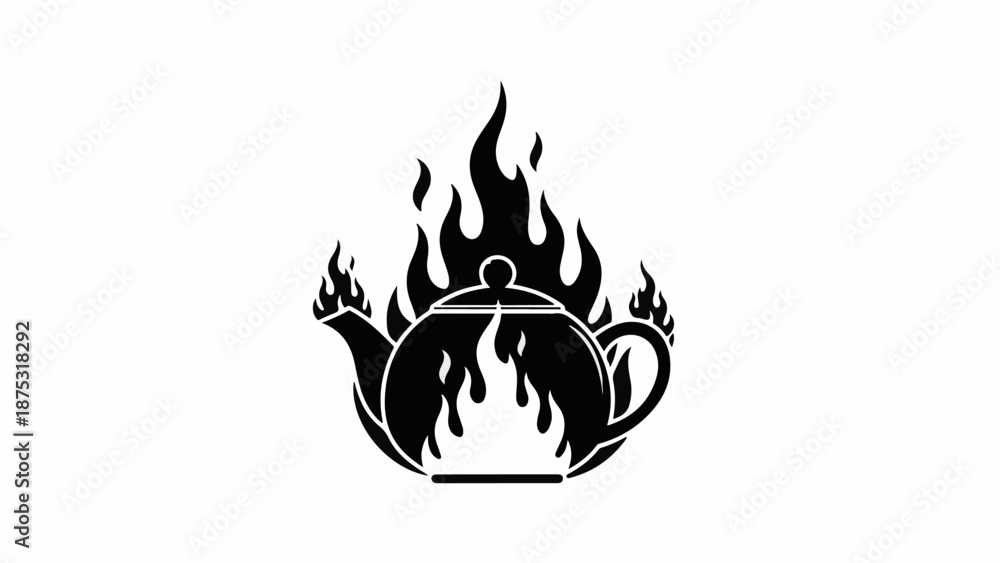 Samolepka Black silhouette of a teapot with flames engulfing it