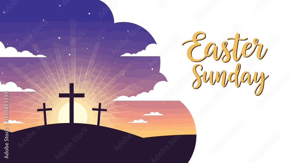 Samolepka Easter Sunday Sunrise with Three Crosses on a Hillside, Symbolic Religious Illus