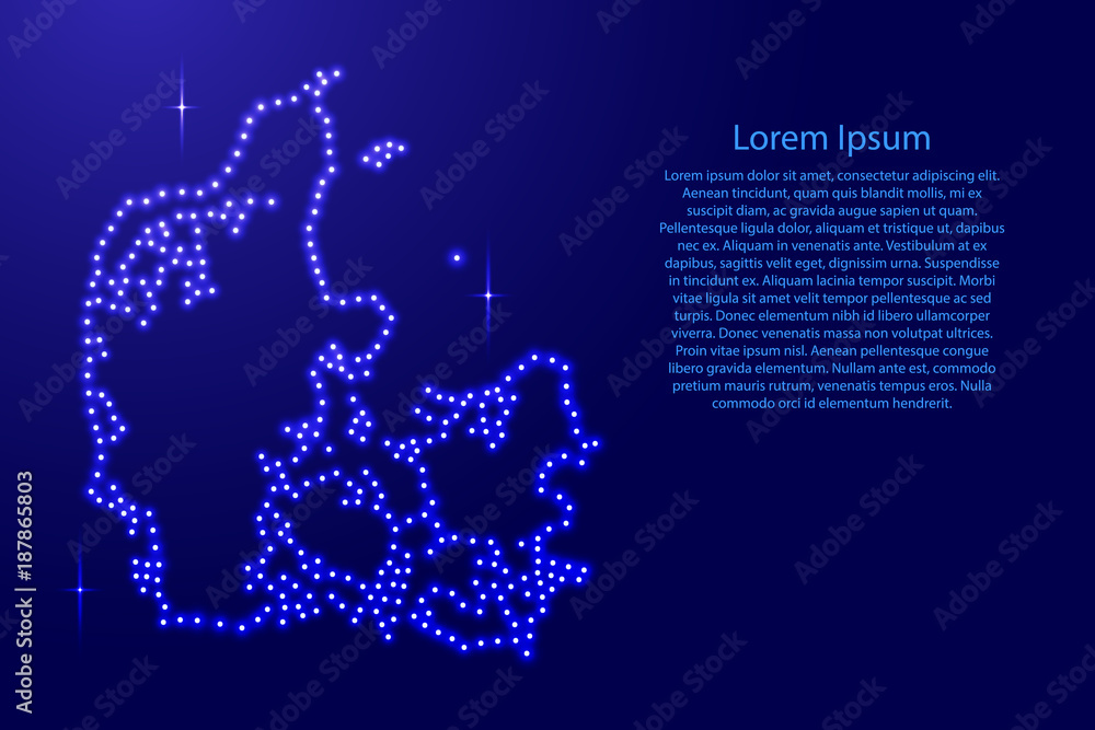 Samolepka Map Denmark from luminous blue star space points on the contour for banner, poster, greeting card, of vector illustration