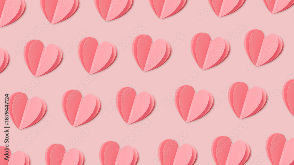 Samolepka Paper hearts pink monochrome textured banner, Beautiful cute DIY heart minimal aesthetic pattern, romantic inspiration, 14 february or Valentine day holiday card, love invitation, pastel colored