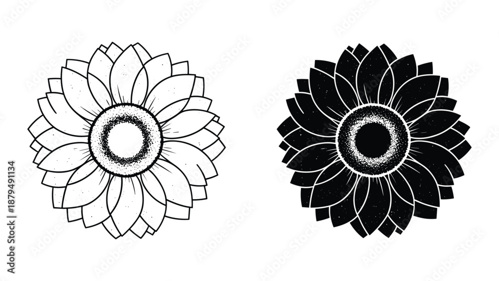 Samolepka Black and white illustration of two flowers with distinct shading