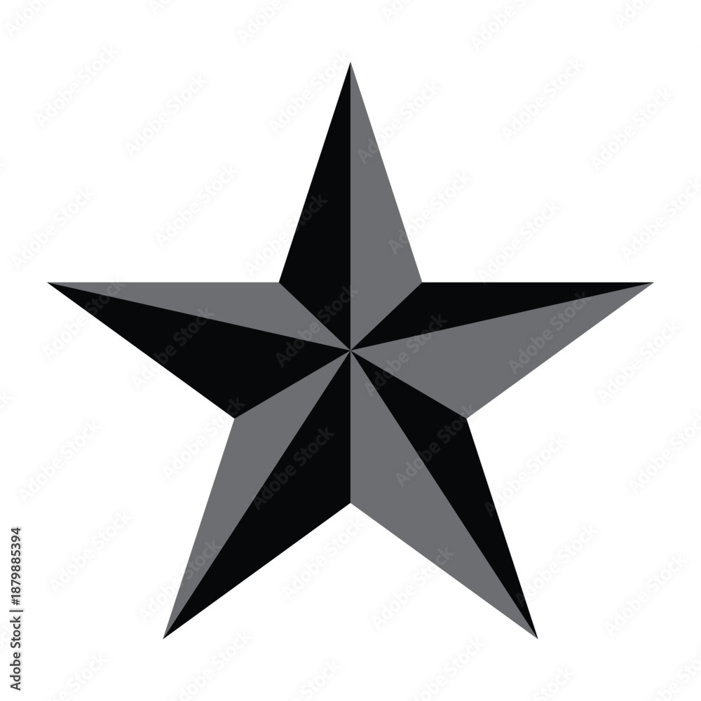 Samolepka 3D Beveled Nautical Star Icon with Black and Grey Shading Isolated on White