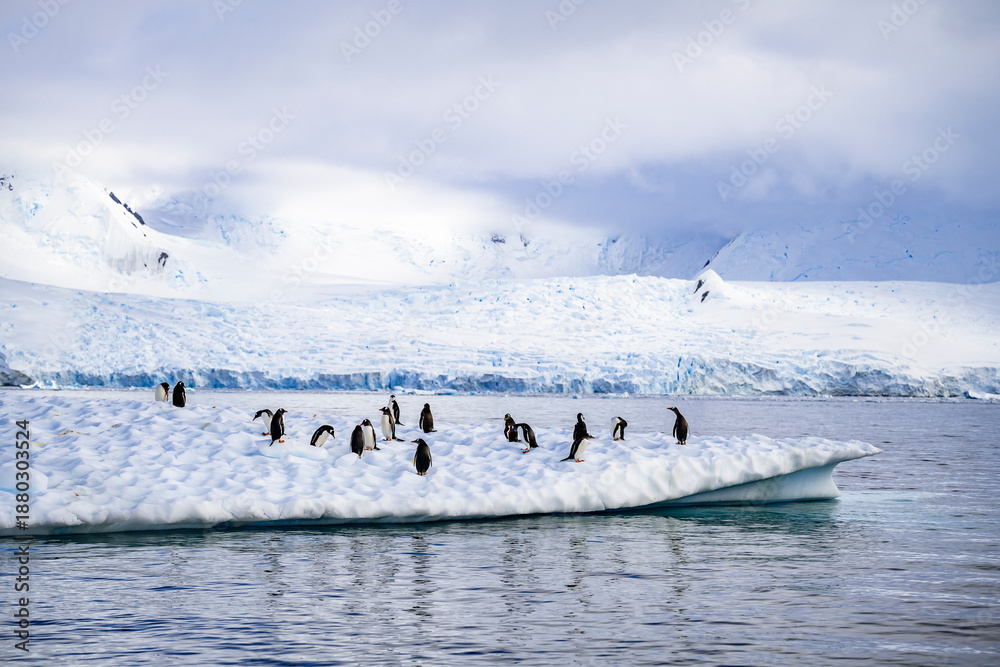 Samolepka Gentoo penguins on Icebergs in antarctica