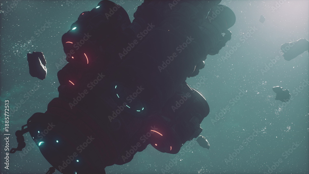 Samolepka A large, enigmatic spacecraft moves silently in the vastness of space