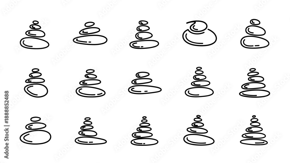 Samolepka Stacked Stones Line Icons Set - Zen Balance and Tranquility Symbols
