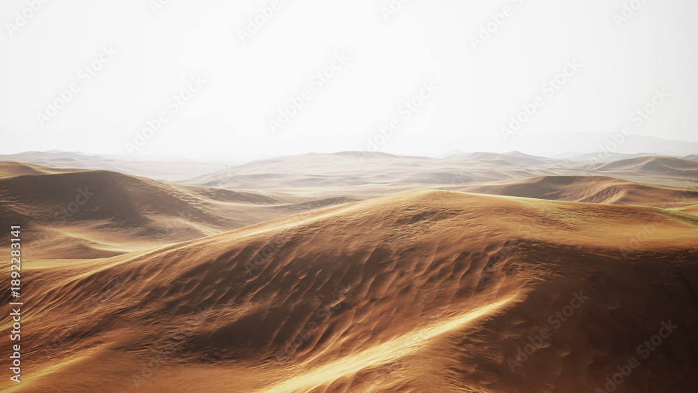 Samolepka Golden sand dunes ripple across the arid landscape, illuminated by soft sunlight
