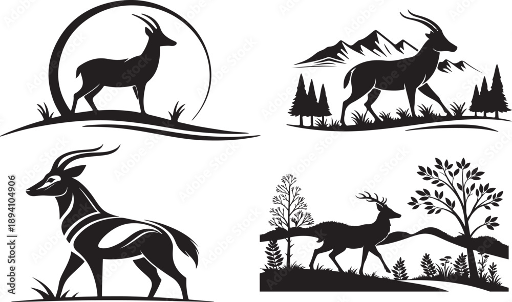 Samolepka Wild animals collection set of animal silhouettes