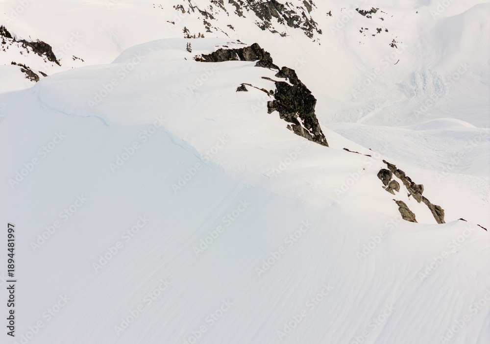 Samolepka Pristine Snowfield Over a Rocky Mountain Ridge in BC, Canada — Wide, Serene Wint