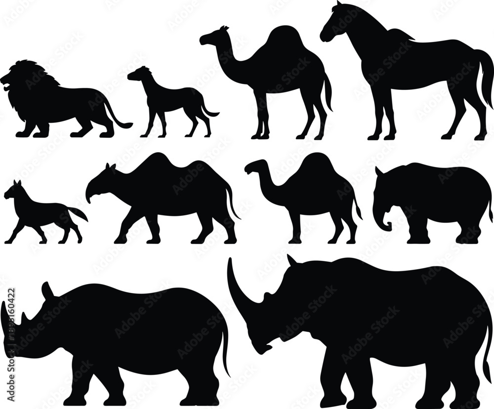 Samolepka Wild animal silhouette collection with lion dog camel horse rhinoceros elephant