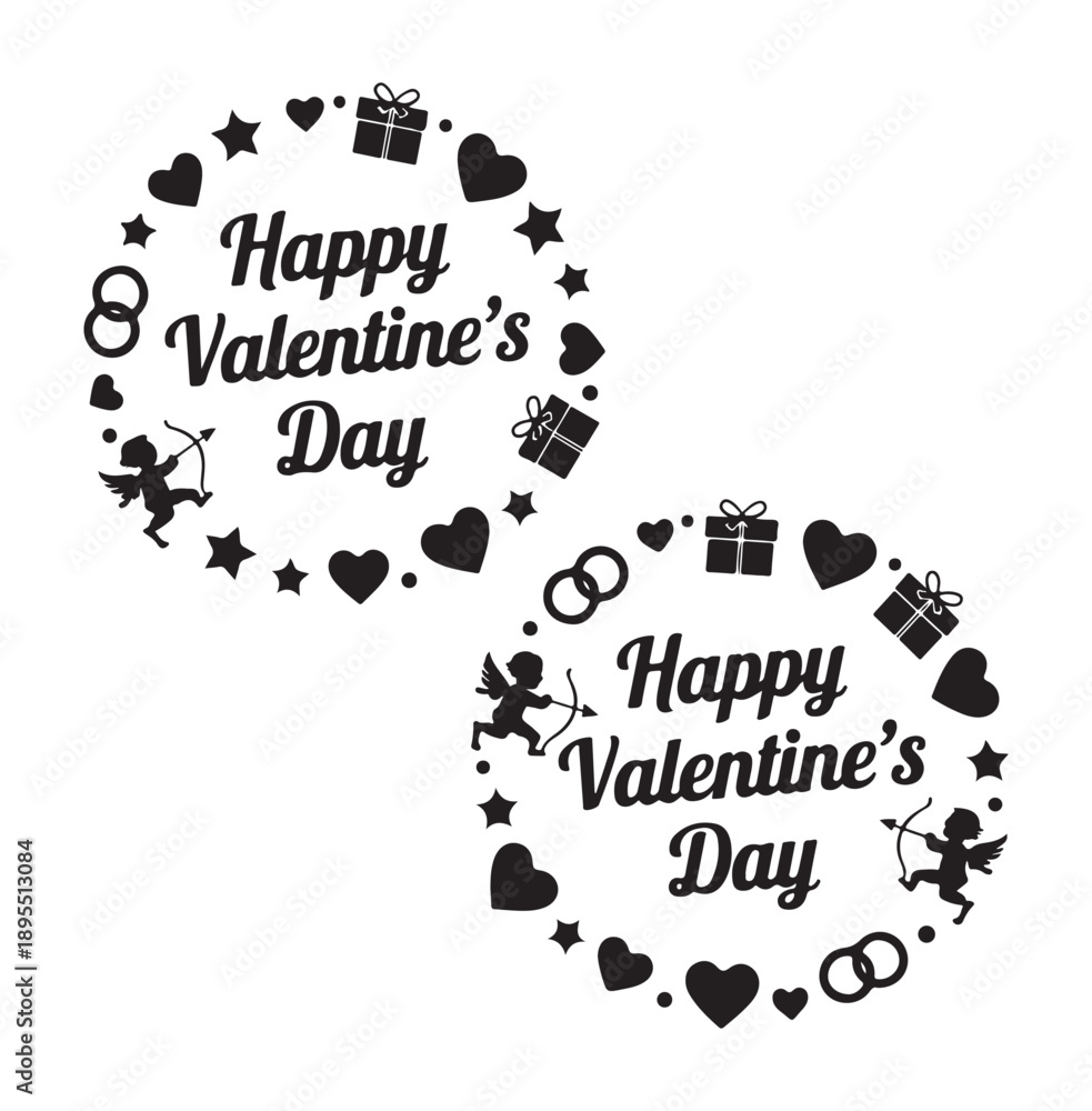 Samolepka Valentines Day Greeting with Cupid and Hearts Black Silhouette