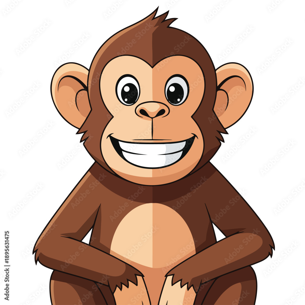 Samolepka A smiling monkey cartoon with brown fur, tan face, and big eyes