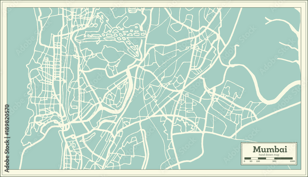 Samolepka Mumbai India City Map in Retro Style. Outline Map.