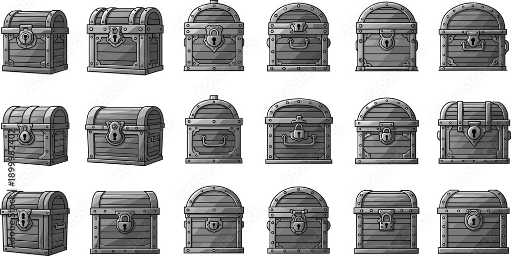 Samolepka Treasure chest icons vector set featuring medieval storage boxes, locked metal t