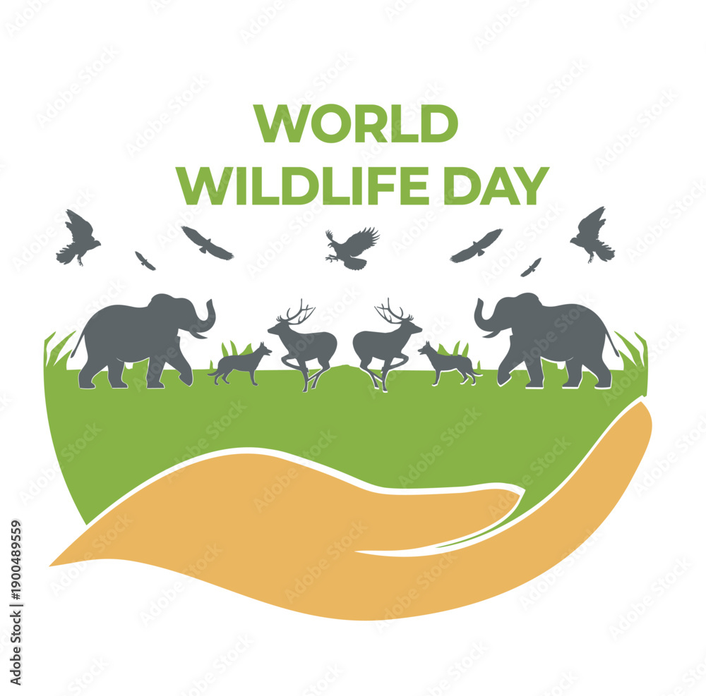 Samolepka World Wildlife Day Illustration with Hand Protecting Wild Animals and Nature