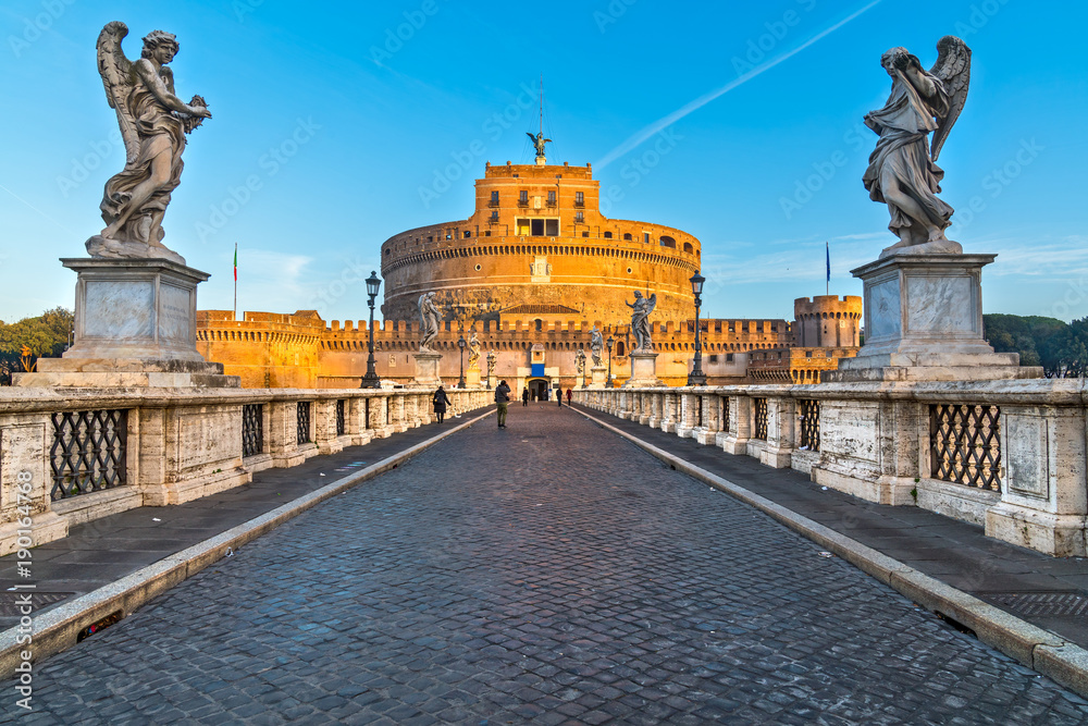 Samolepka Castel Sant'angelo and bridge at sunset, Rome, Italy.