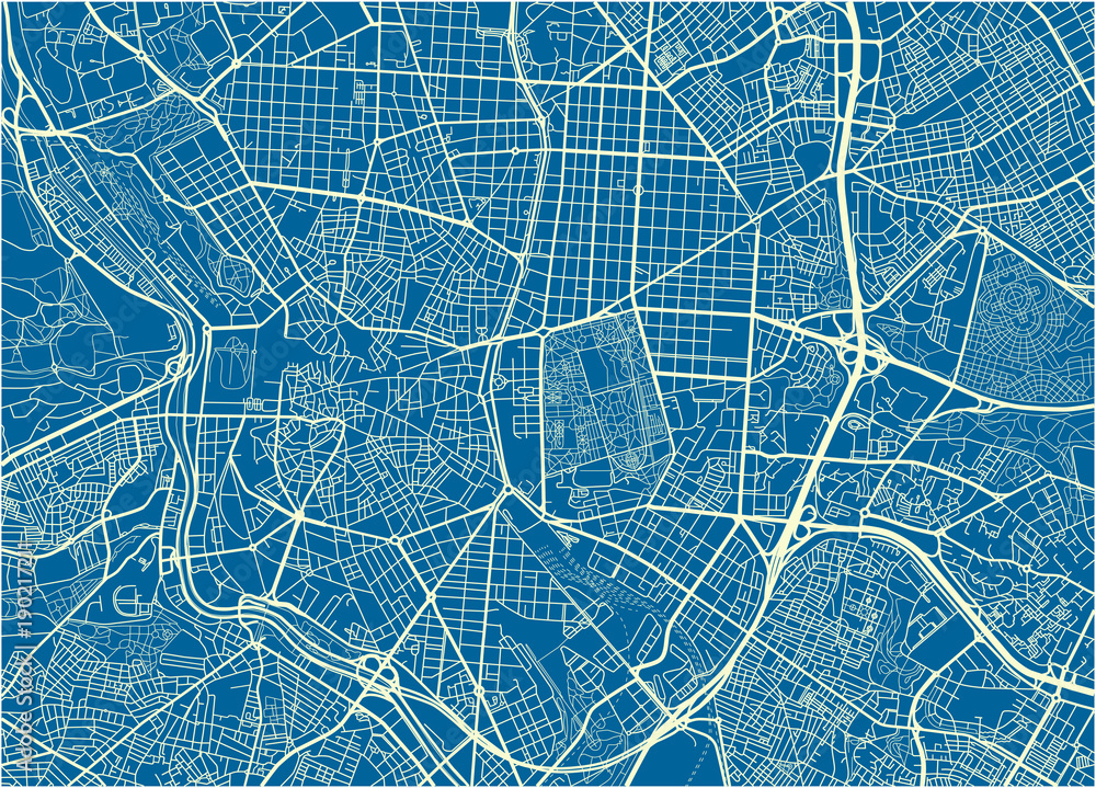 Samolepka Blue and White vector city map of Madrid with well organized separated layers