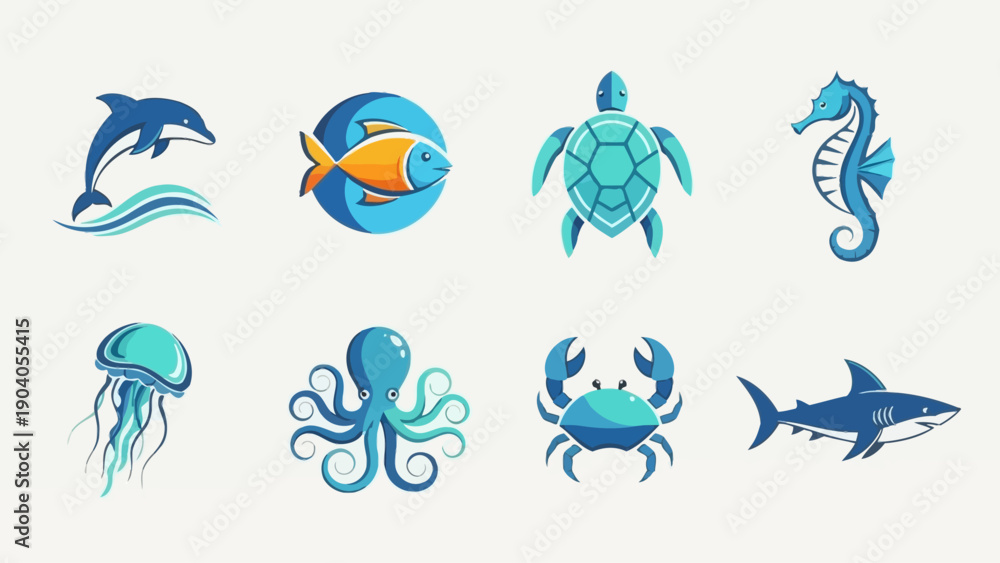 Samolepka A vibrant collection of stylized marine life animal icons.