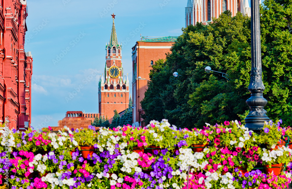 Samolepka Spasskaya Tower. Red square. Sunny summer day. Moscow. Russia