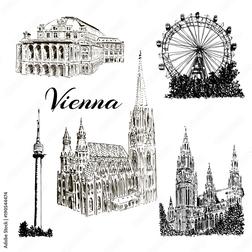 Samolepka Set of Vienna symbols Vector hand drawn ink pen sketch illustration
