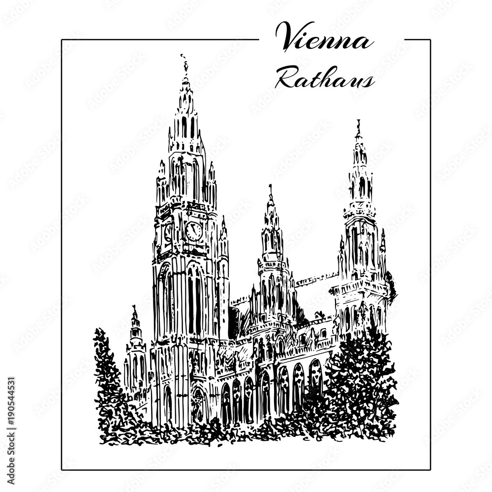 Samolepka Vienna symbol Vector hand drawn sketch illustration. Rathaus,