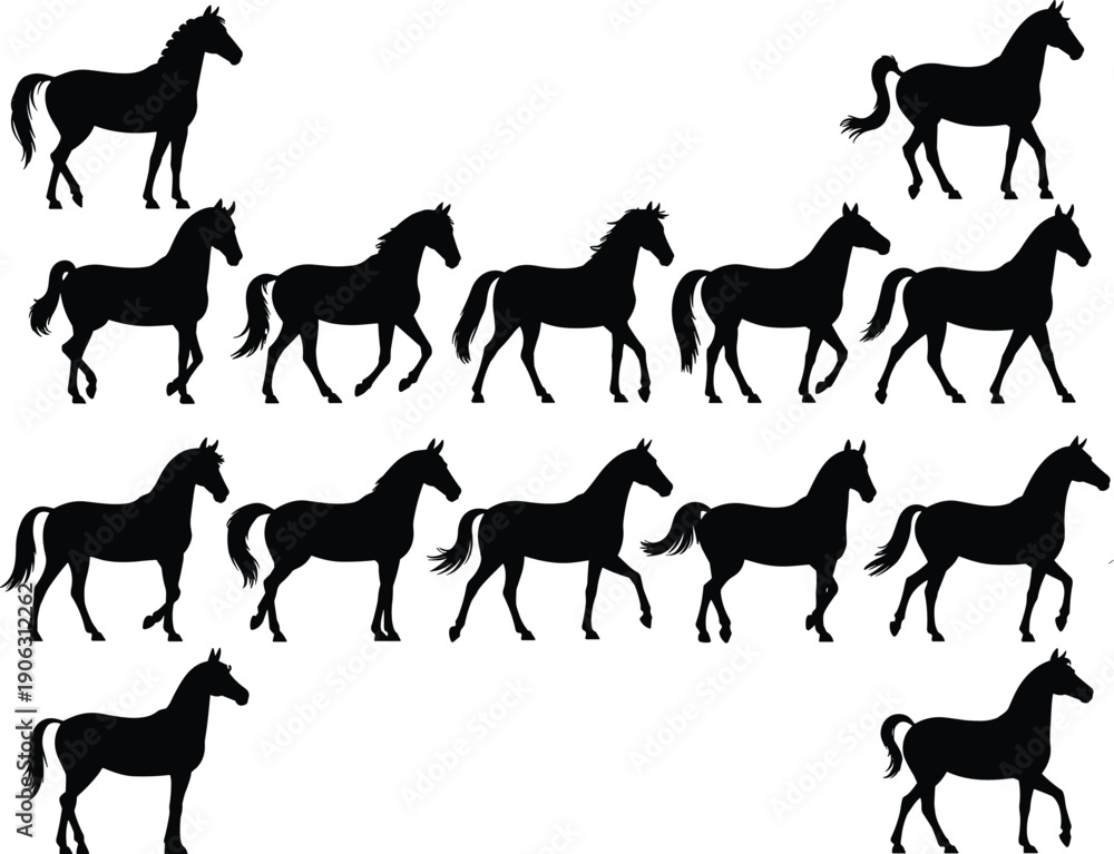 Samolepka Horse silhouettes collection, running walking standing poses, equine animal moti