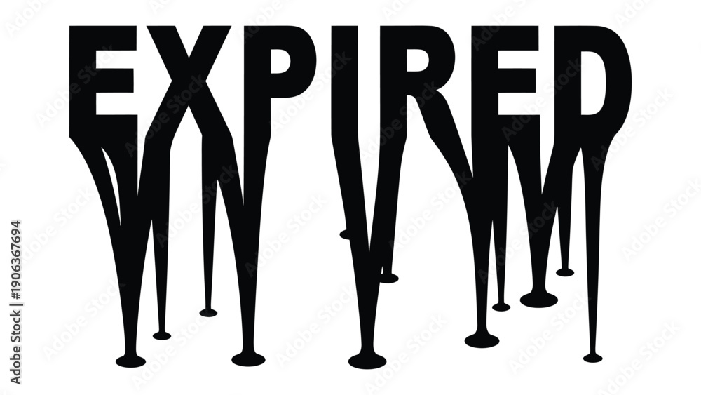 Samolepka Expired Word Art: Bold black lettering spells out the word EXPIRED, with a dripping, melting effect, symbolizing the passage of time