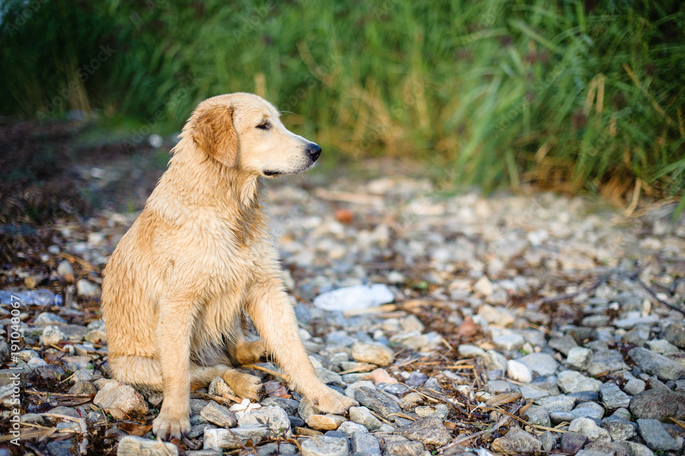 Samolepka portrait of golden retriever in nature outdoor