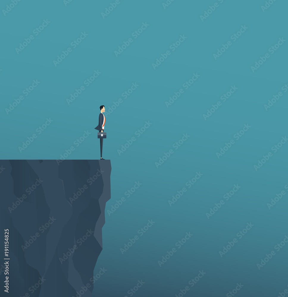Samolepka flat vector concept businessman standing on mountain cliff ,and business obstacl