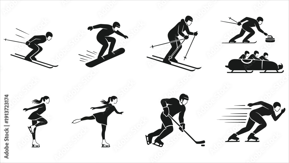 Samolepka Winter sports icon collection in vector style featuring skiing, snowboarding, ic