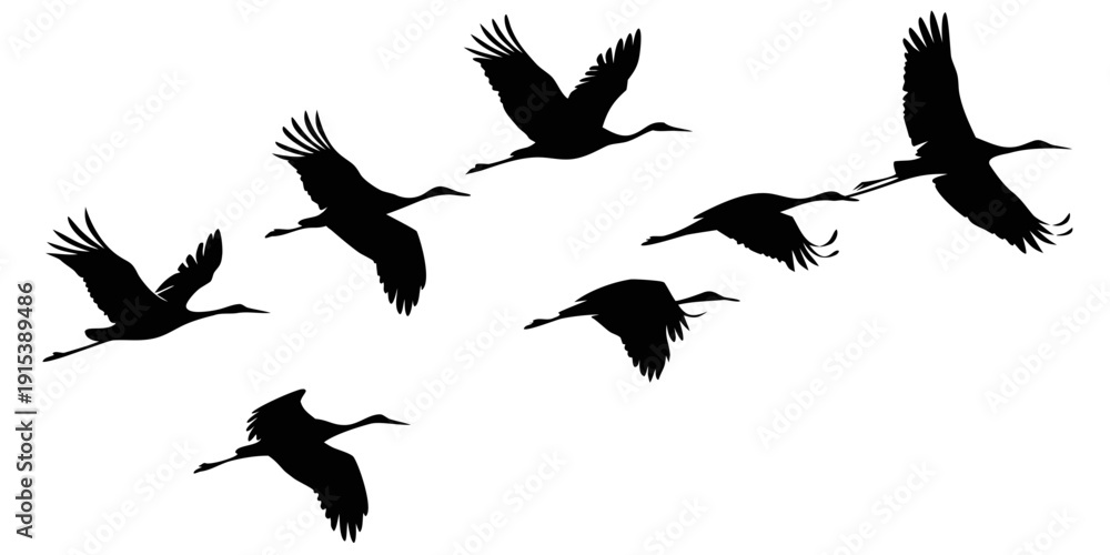 Samolepka A flock of birds flying in a diagonal formation against a white background Vecto